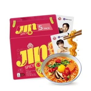 Greitai paruošiami makaronai Jin Ramen Spicy – Aštrūs makaronai su daržovėmis 600g (120g*5vnt) – Ottogi