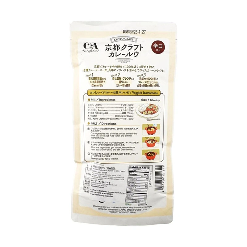 [Kyoto Craft] Curry Sauce Hot, Plant Based 120g (6 servings)