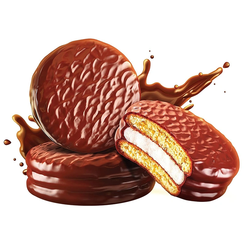 „Choco Pie“ – tai užkandinis pyragėlis, sudarytas iš dviejų nedidelių apvalių biskvito sluoksnių su minkštu zefyro įdaru, padengtų šokoladu.